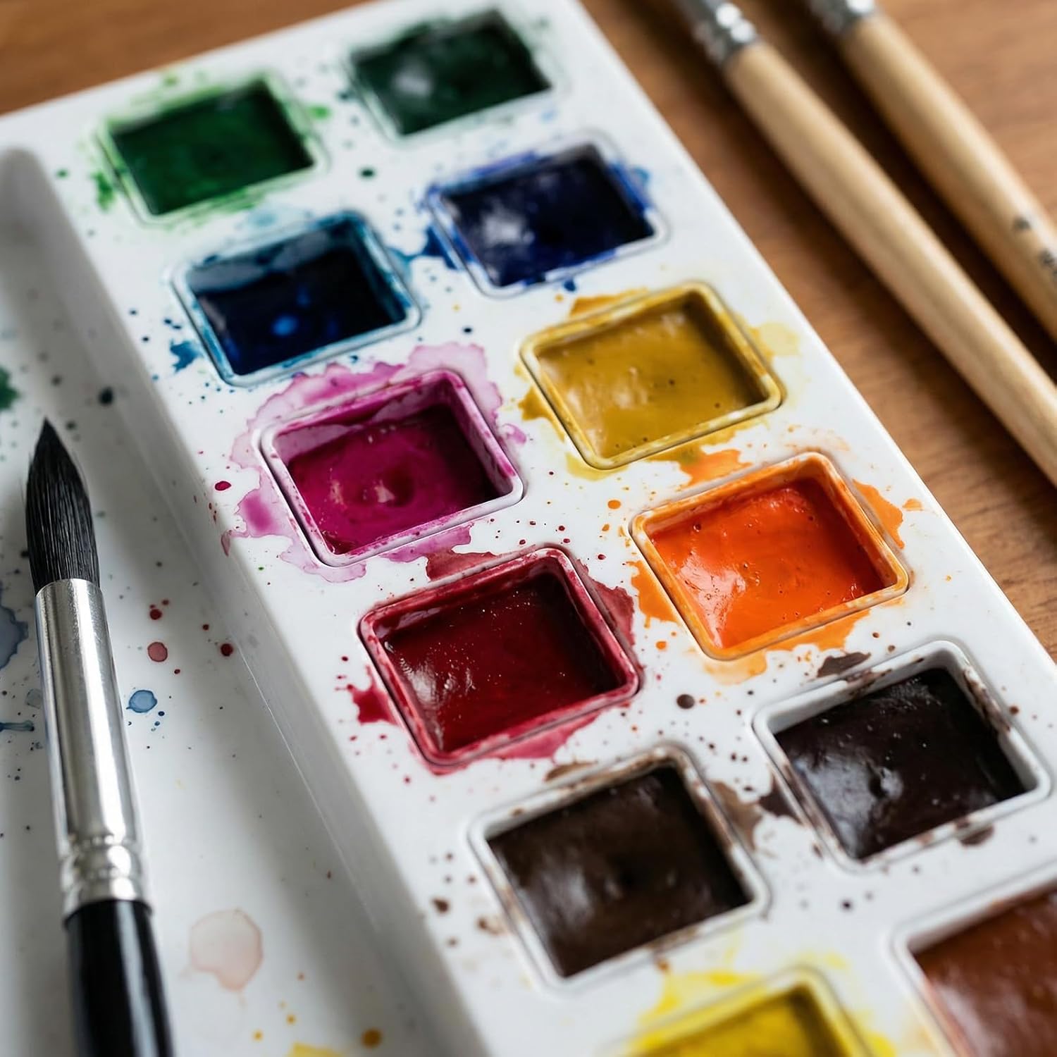 - PP Material: These watercolor paint pans are made of white PP plastic, combining a lightweight construction with crack resistance. The smooth, non-porous surface is easy to clean with water, prevents stains, and is reusable. Its durability and ease of maintenance make it a long-term investment, protecting your paint collection