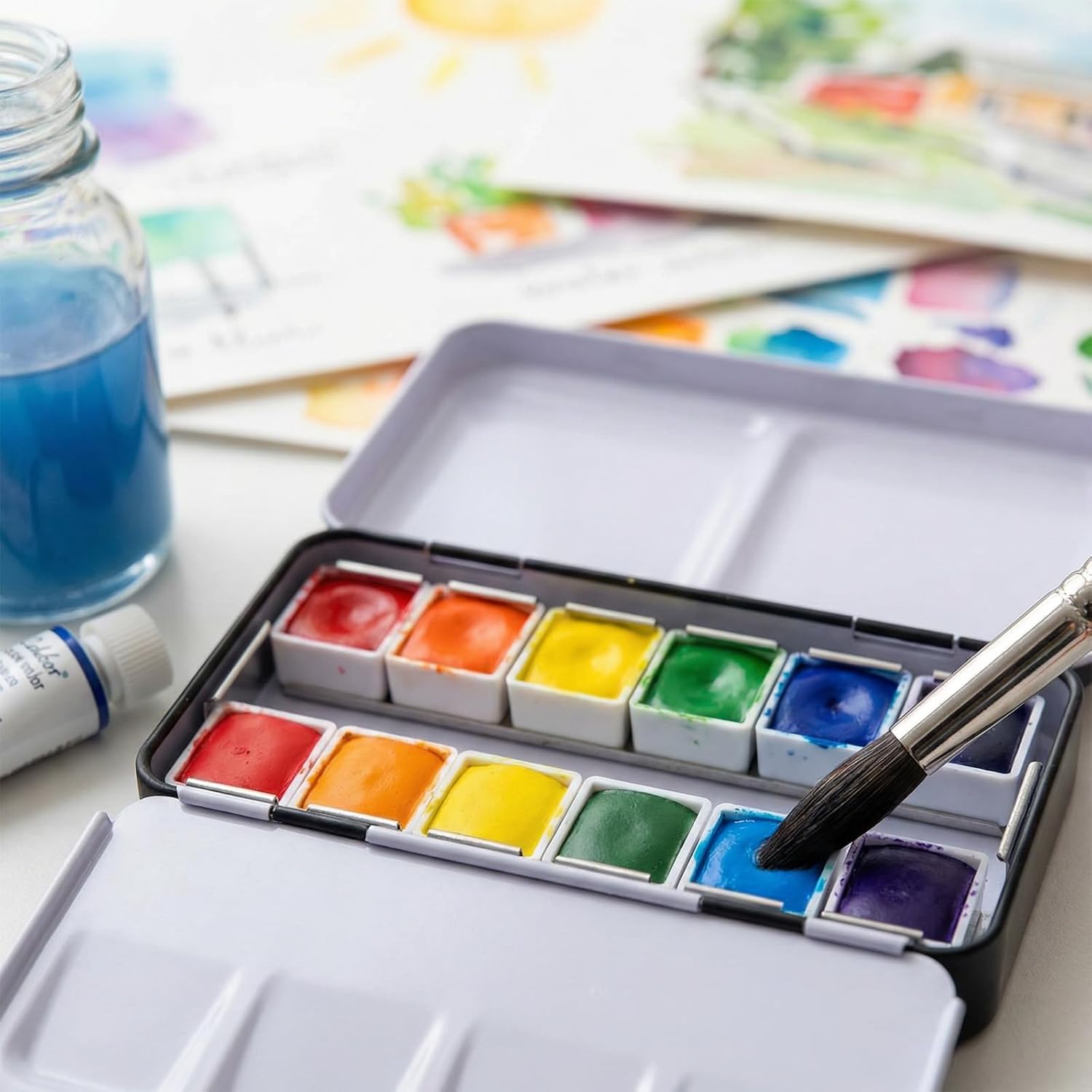 - Compact and Portable: The classic watercolor half pans feature a thin, efficient wall thickness, reducing weight without sacrificing strength. The compact shape easily fits into a portable paint box, allowing artists to carry their entire paint set outdoors or into the classroom without the need for bulky paint tubes