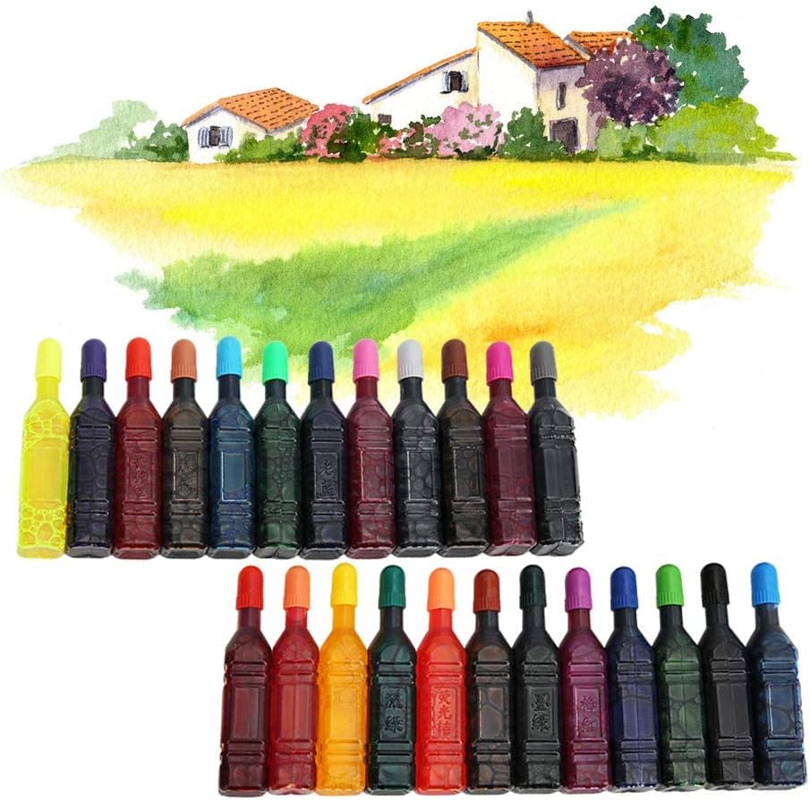 - Package totally includes 1 box liquid watercolor ink which consists of 24 colors, each color is 8ml in a single bottle.