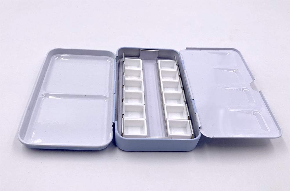 - 12pcs half pans, 1.8 ml capacity and 0.8inch x 0.65inch x 0.38inch in size each, fit the metal tray nicely and easily removed for clean. Each pan is removable and can be refilled with your color of choice