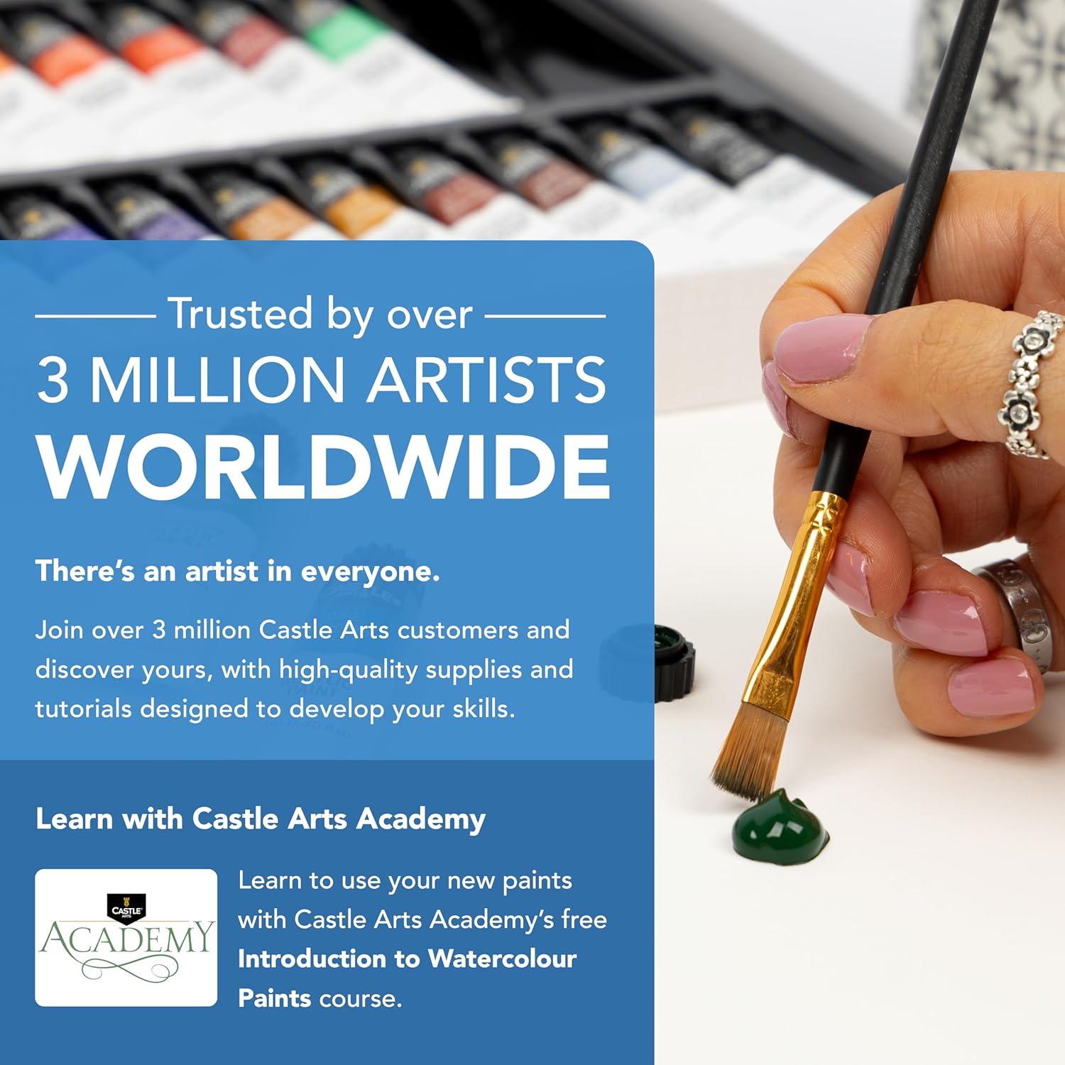 Castle Art Supplies 24 X 12ML Watercolor Paint Set | Great Value Set for Adult Artists, Beginners and Advanced | Vibrant Variety of Smooth-to-Use Colors | in Impressive Presentation Box with Tutorial (New)