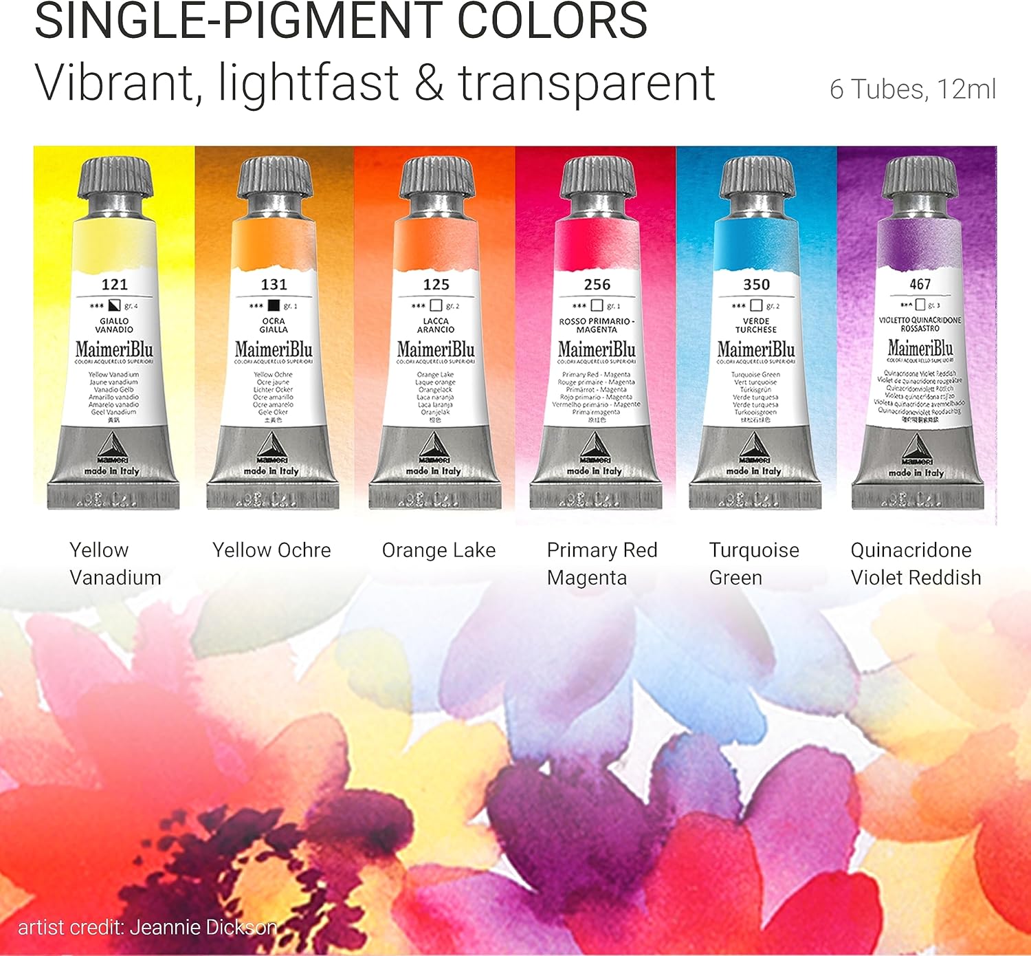 MaimeriBlu, Jeannie Dickson Artist Set, Watercolor Paint, 12ml, 6 Tubes – Professional Watercolor Painting Supplies