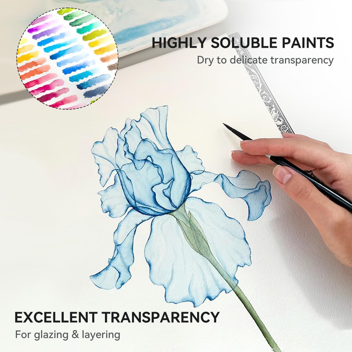 - Bright colours, high transparency, fine pigments – Keep your artwork for a long time without fading.