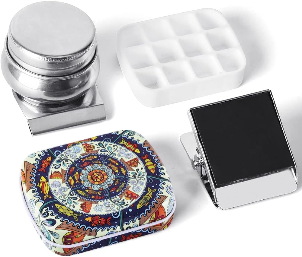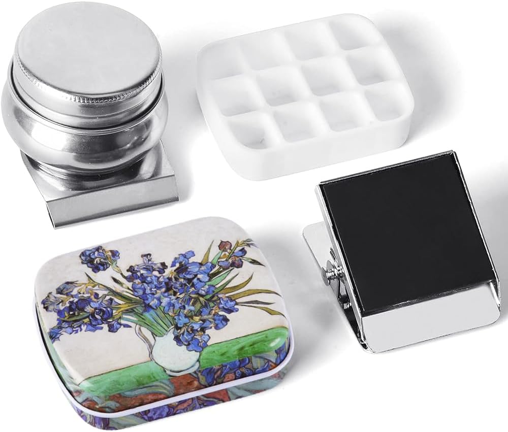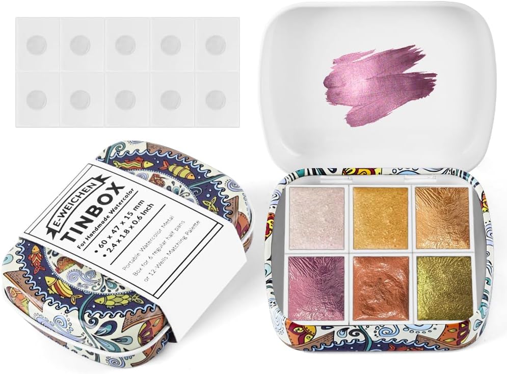 - Portable Design: Mini watercolor travel set is housed in a metal case measuring just 50x50x11mm (1.96"x1.96"x0.6"), this water color kit includes 6 half pans and 10 glue spots to secure paints.Its pocket-sized design makes it essential for outdoor painting supplies