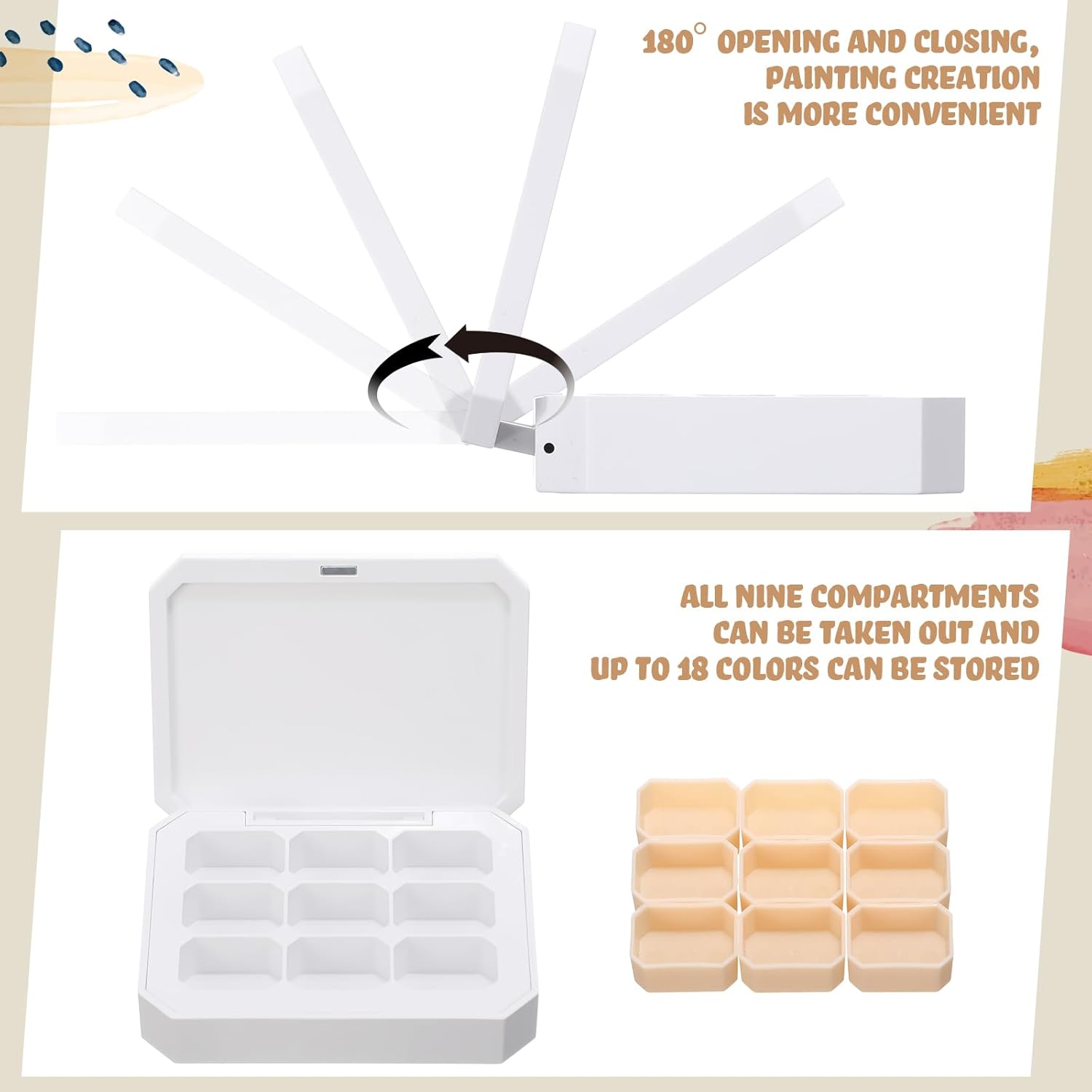 - Detachable boxes: each paint case can be taken out individually for you to add paint or clean, and if you need more color painting, you can take out them and fill the entire boxes