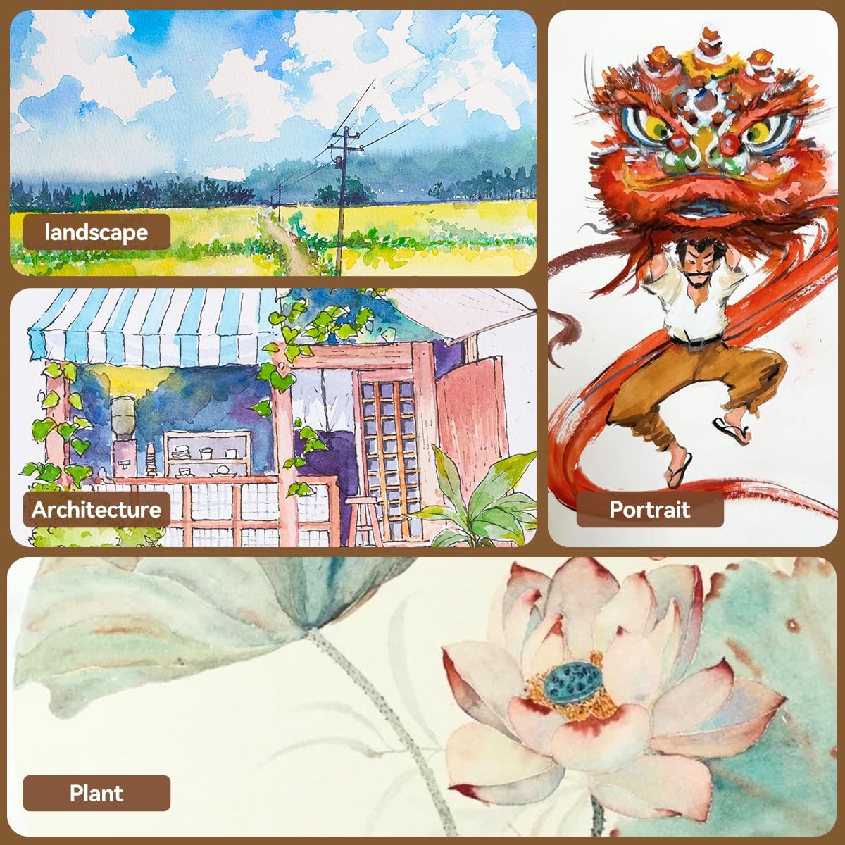 Vivart Premium 48‑Color Watercolor Set for Adults & Beginners – 48 Vivid Half‑Pans, 2 Artist‑Grade Brushes (Sizes 8 & 12), 20‑Sheet 300 gsm Cold‑Press Paper Pad & Step‑by‑Step e‑Course