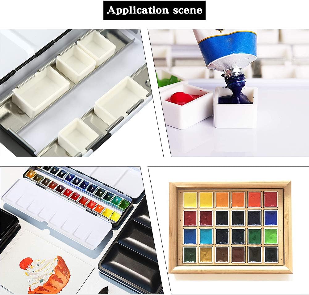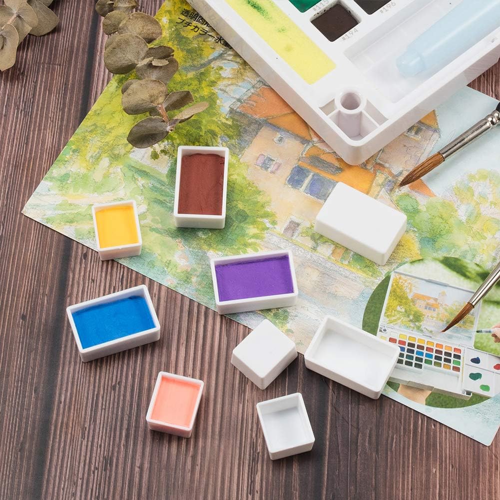 KALIONE 50 Pcs Watercolor Half Pans White Plastic Empty Watercolor Paint Pans Empty Watercolor Palette Plastic Watercolor Tins Travel Tins Paint Case Empty Half Pans for Watercolor Acrylics Palette