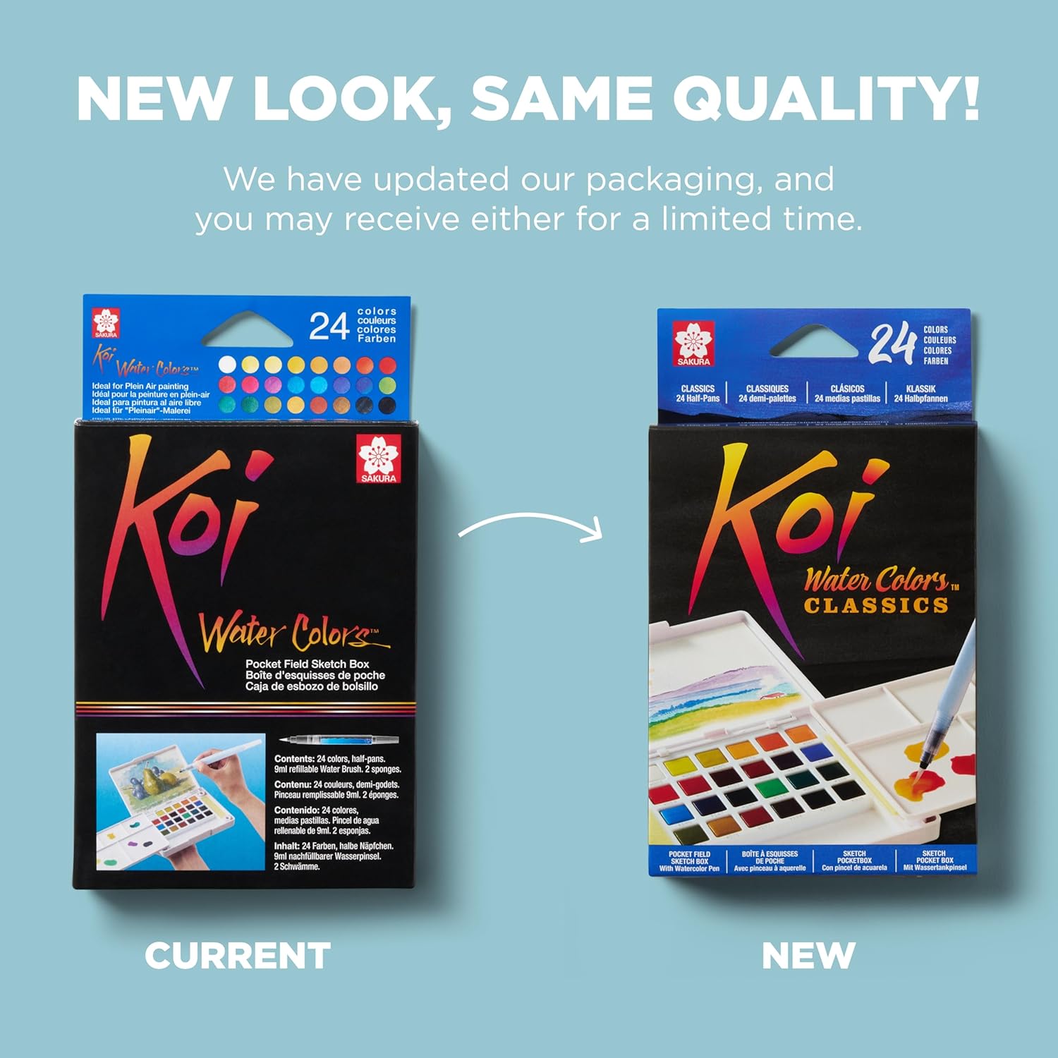 SAKURA XNCW-24N, 24 Assorted Watercolors Field Sketch Set with Brush
