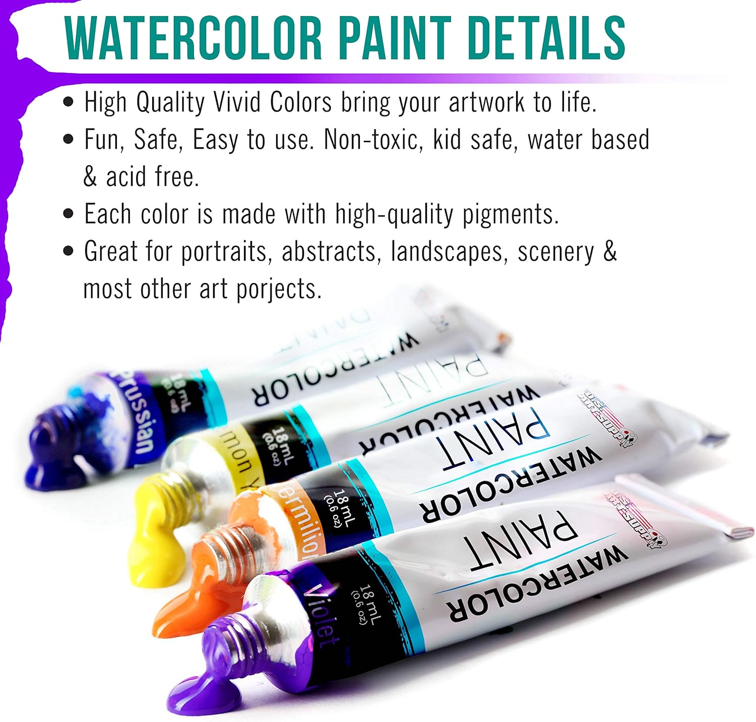 Paul Rubens Watercolor Paint, 36 Vibrant Colors Rich Pigments for Watercolor Painters, Students, Beginners, Hobbyist, Ideal for Many Watercolor Applications (5ml Each Tube)