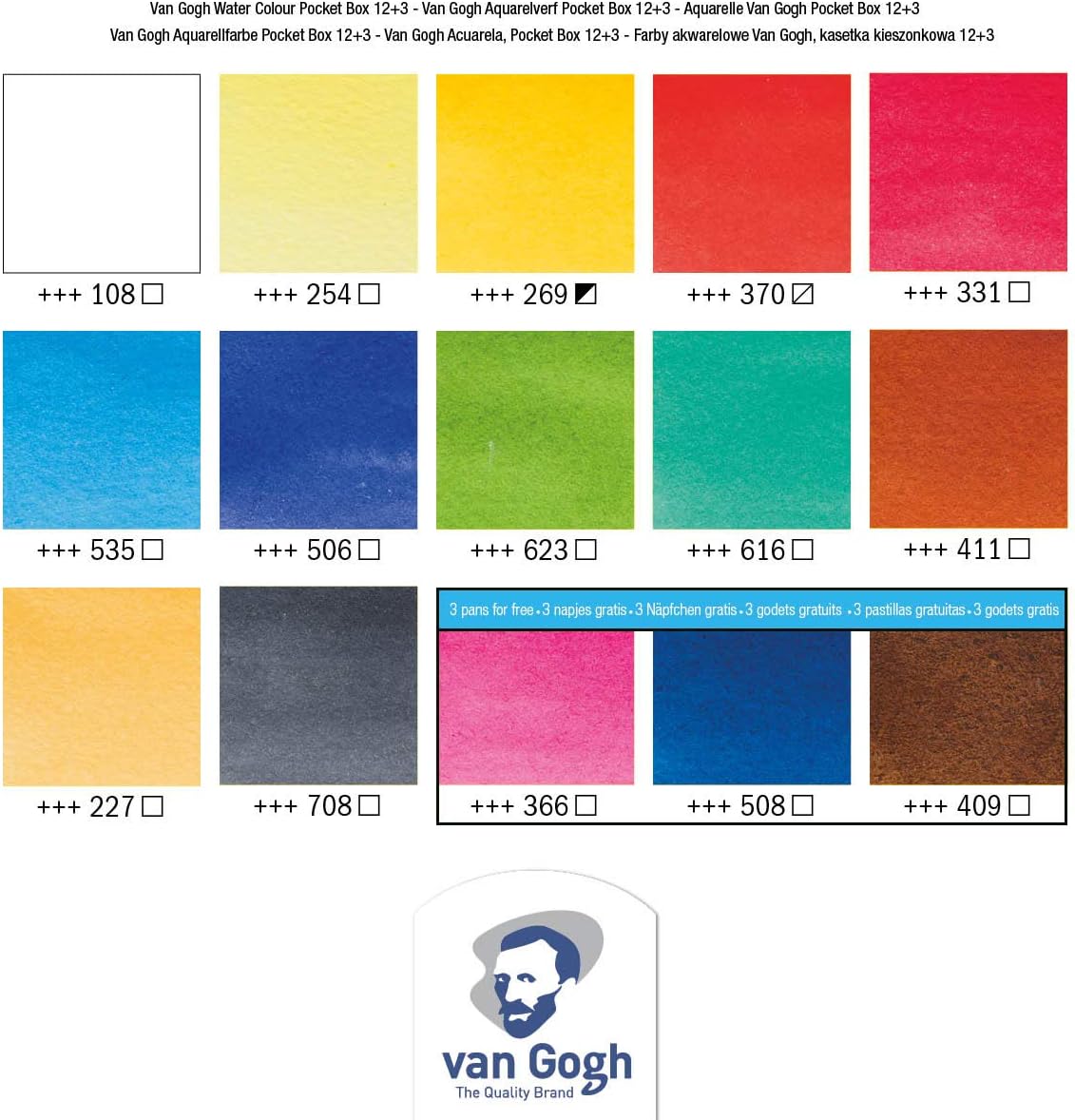 Van Gogh Estuche de acuarelas básicas con 12 acuarelas en medias pastillas + 3 colours gratis (20808632)