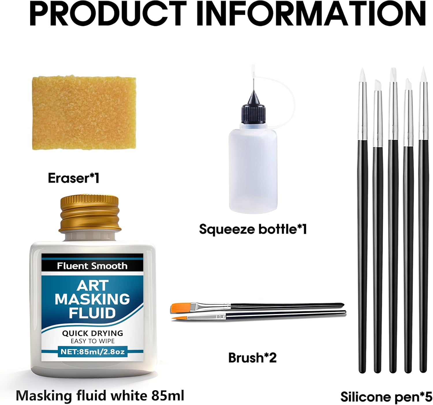 - Art Masking Fluid Kit: Include 30ml art masking fluid,5 x silicone pen,2x cleaning brush.