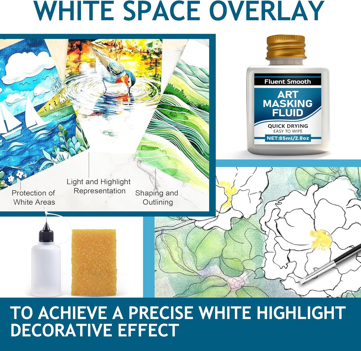 Masking Fluid is a commonly used auxiliary material in watercolor painting. It is mainly used to retain partial white or light-colored areas of paper during the painting process to avoid being covered by pigment.