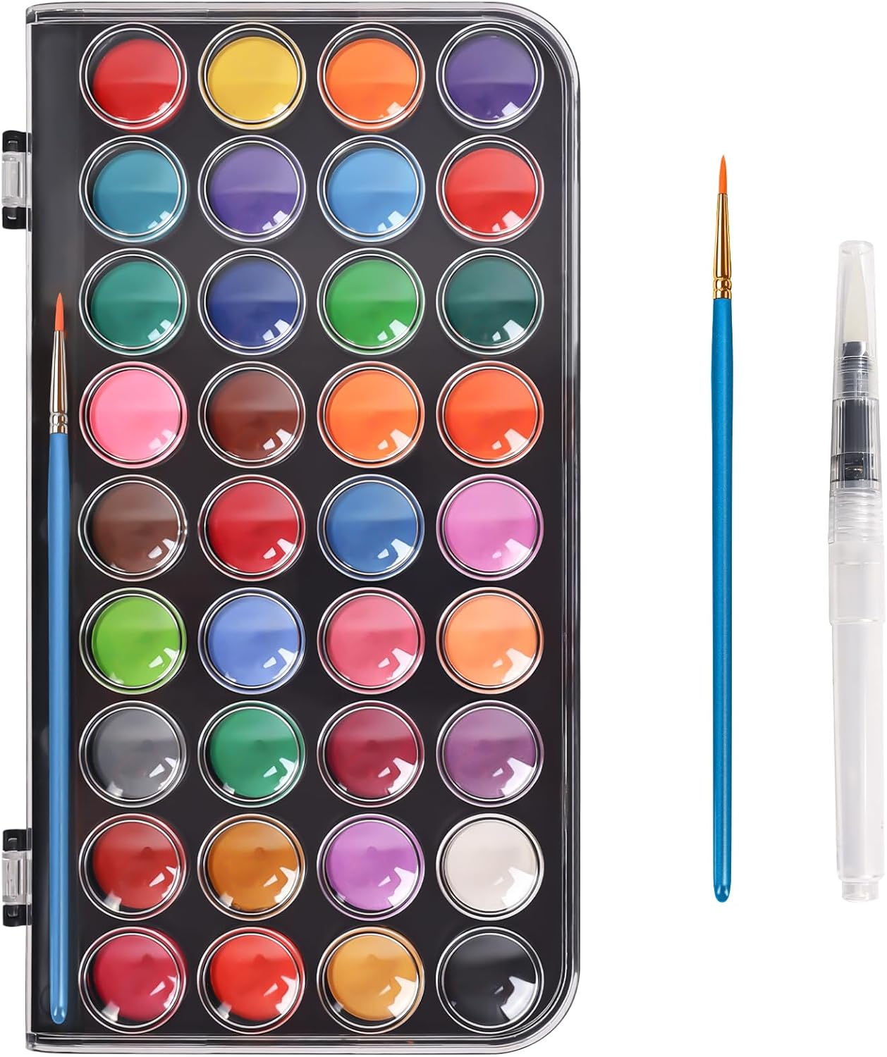 Watercolor Paint, 48 Colors Washable Paint Set, 6 Brush, 6 Refillable Water B…